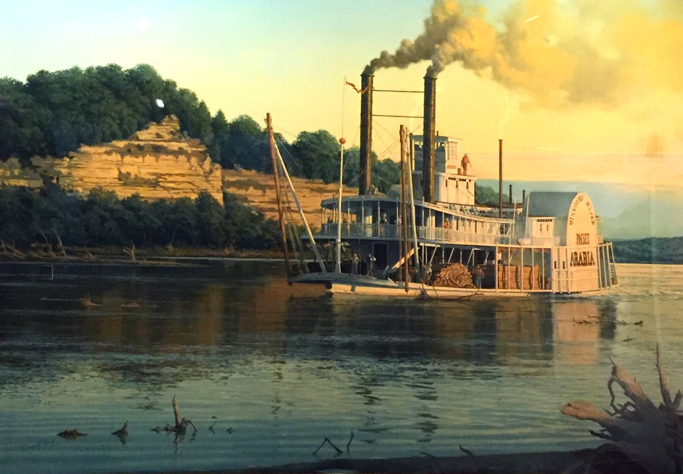I spent a huge chunk of time last year learning about western river steamboats for the first section of my book. In it, a group of Indiana farmers travel by steamboat from Cincinnati to New Orleans on their way to California. So, on my way home to Colorado from Indiana, I made a point of stopping in Kansas City, Missouri, to see the Arabia Steamboat Museum.