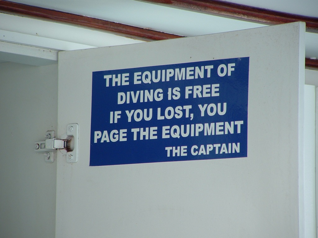 But maybe someday this sign will be true: you can page your diving equipment and someone who didn’t lose theirs could go get it for you! That would be cool.