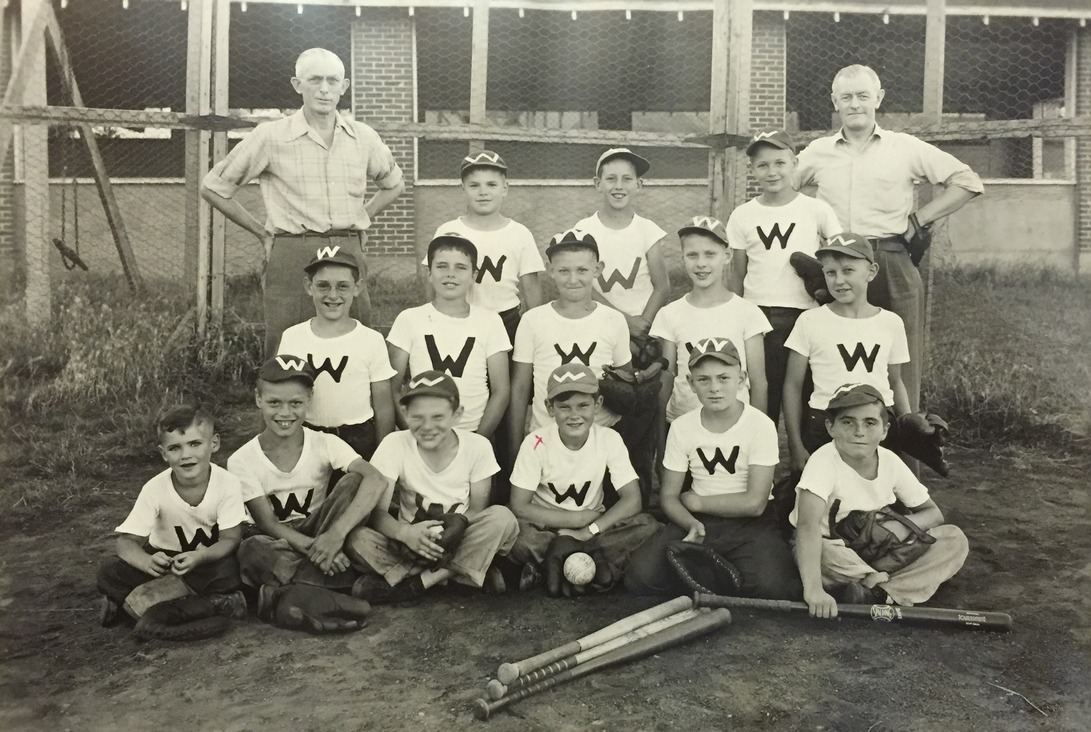 Feature image: My dad (marked with a red X) with his youth baseball team. The W stands for Washington Elementary School. Corvallis, Oregon about 1944. I remember playing recess games in that building in the background 25 years later.