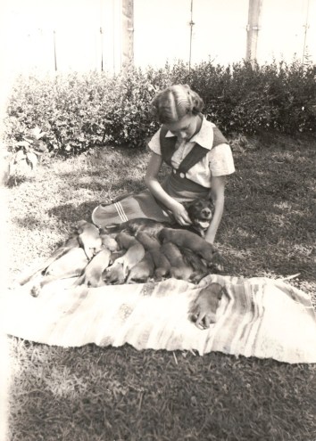 Feature image: Cleo M. (Gee) Struss and Frances Struss with two of their Irish setters. (Family collection)