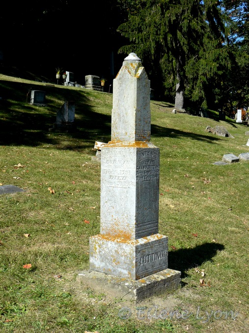 Headstone for Jonas Cutting and Infant Cutting, son of G.A. and N.V. Cutting. Though the child lived almost 5 months, he was not given a name. Woodlawn Cemetery, Winona, Minn. (E. Lyon 2012)