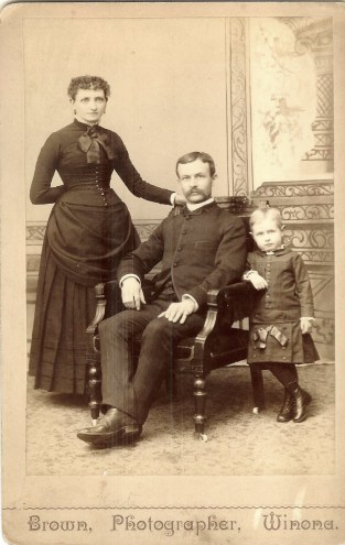 George and Nora married in 1878.3 They had two sons together, the first dying as an infant. They buried this unnamed child with George’s grandfather, Jonas Cutting, in Winona, Minnesota.4 George, Nora and their son, Clyde, continued living in Winona until about 1900.