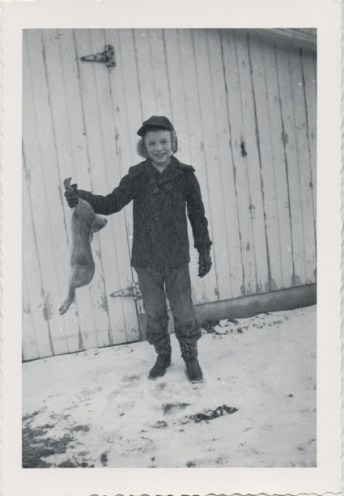 In the winter of 1935, according to Betty, “The two boys took long sticks and poked them into the culverts along the road. If they scared out a rabbit, Duke, who thought this a great sport, caught the rabbit. The boys took the rabbit away from the dog and brought it home, and Dad skinned and dressed it when he came home. Mother cooked the rabbits, and she made them taste delicious. If there were extras, they were hung from the porch ceiling outside, where they quickly froze for use another day.”