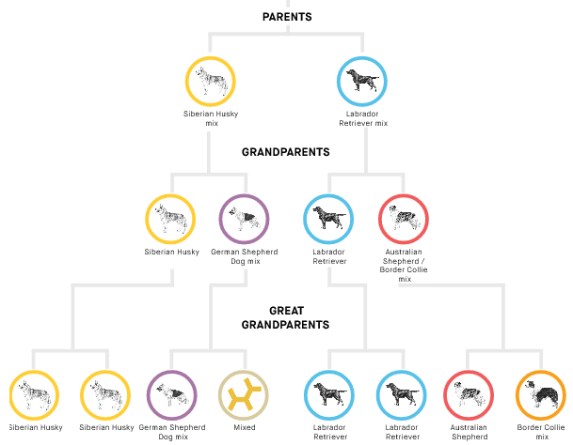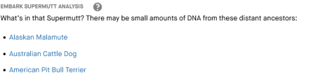 Befitting a genealogist’s dog, Sterling now has his very own family tree, and “ethnicity” estimate. He’s truly a dog of the world: Siberia, Australia, Germany, America.