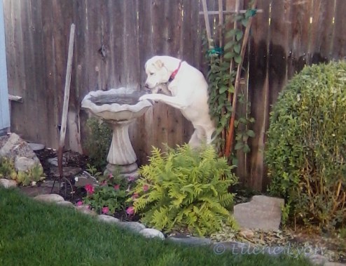 But there’s no way he could be a Pyrenees-Lab mix. A dog like that would top a hundred pounds, easy. Sterling has maxed out around 65 pounds. He has some similarities to our late heeler-mix dog. If Sterling had come from a farm or ranch, especially one with sheep, he very well could be a Pyrenees-heeler combo.