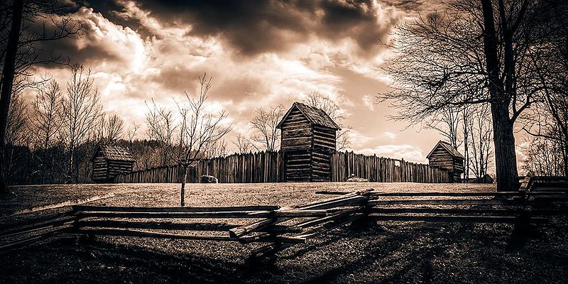 Feature image: Prickett’s Fort (a reconstruction, now a state park) lies next to Prickett’s Creek, across from the land patented by Elias Pearce, E.D. Pierce’s grandfather. The fort was an important safe haven for the nearby settlers in colonial days. (Wikimedia Commons)