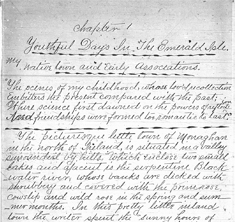 Lou Larrick’s transcribed Pierce memoir is about 250 pages long. But she left over 600 handwritten manuscript pages, including transcriptions of news articles and other things.2 One item was copied from a booklet written and published by an Irish immigrant to Canada. She even put his name, E.M. Morphy, on her copied version, but the Joneses persisted in attributing it to Pierce.
