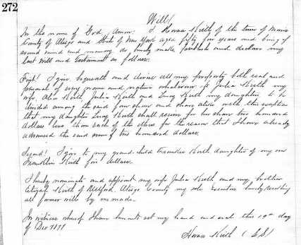 Horace Keith’s short (half-page) will, written 17 years prior to his death and never modified. Though it divides his estate equally between his surviving wife, Julia, and children, one decided to contest it anyway. (Verifying that bit is on the back burner at the moment).