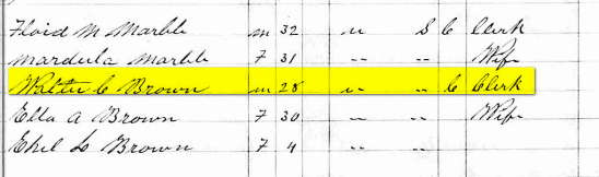 Ancestry hints and trees combined two different men named Walter C. Brown. The last record for him with his wife and daughter (pre-divorce) was an 1892 New York census. Walter, born in February 1865, worked as a clerk then.