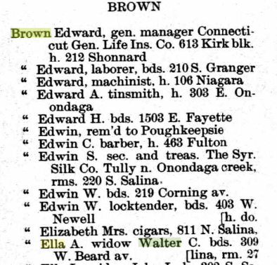 (Note: Though Walter C. Brown came originally from tiny Otselic, New York, he appears to have no connection to the family of notorious Grace Mae Brown, murder victim. One of those side tunnels in the rabbit burrow!)
