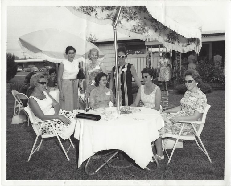 The photograph above shows a group of women attending a “Patio Punch Party” at Fort Lee military base in Virginia. My mother is seated at the table, second from the left. The picture was taken on July 16, 1964 by an Army staff photographer (thus is not copyrighted). The photographer is named by rank and last name: Sp5 Ketchum.