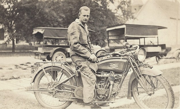 1. I think that is a cool photo with the motorcycle. Grandpa said it was a top of the line Harley-Davidson, and my husband thought so, too, at first. I just went with the name printed on the tank and didn’t research it. Hubby says that Excelsior is the brand and it was around for about 15 years – competed with HD and Indian.