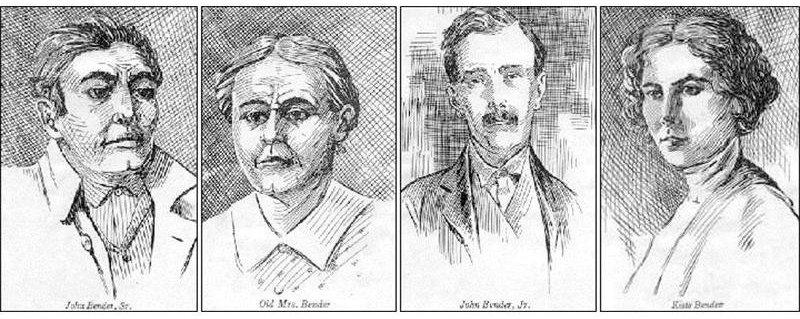 The older couple were known as Mr. and Mrs. John Bender Sr. The younger woman called herself Prof. Miss Katie Bender and advertised herself as a healer and medium. She claimed she could even cure deafness. The younger man was called John Bender Jr. or John Gebhardt. Neighbors said the younger pair were a married couple, not siblings. All spoke with at least a mild German accent.