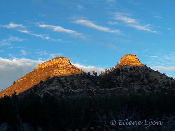 Feature image: Twin Buttes near Durango at sunset on December 31, 2023.