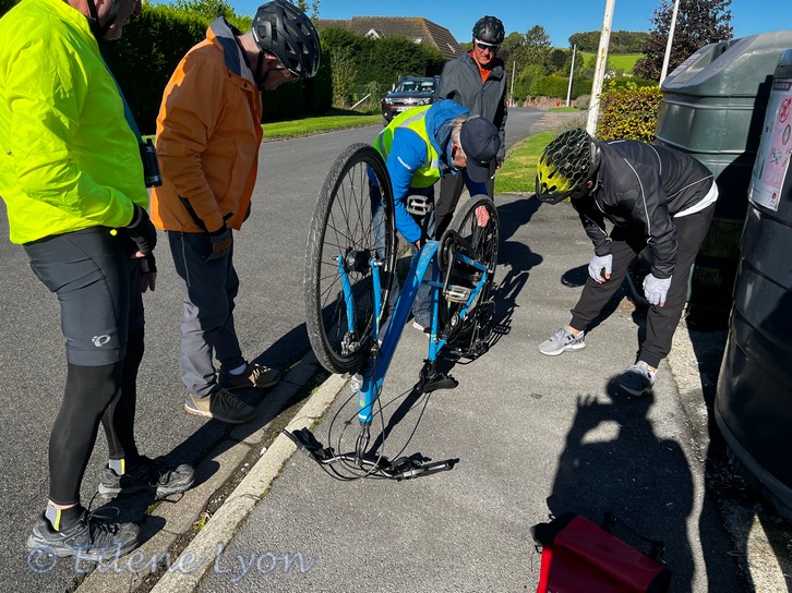 We began our second week of the bike tour departing from Péronne. We took our coffee break in what appeared to be a fairly new community (Curlu) where our group experienced a flat tire. Our guide, Bart, was up for the task of doing the repair.