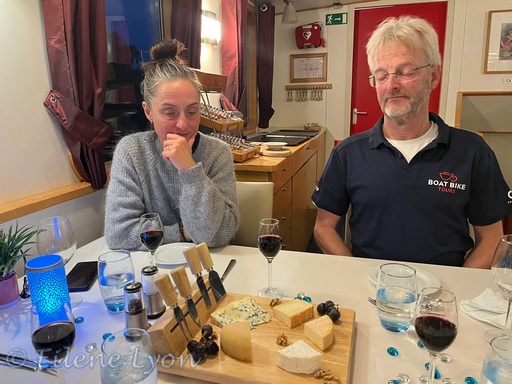Our final meal aboard the Fleur was a sensuous duck confit. In addition to dessert, we also had a cheeseboard tasting with a round of port (not my favorite wine). We dined with our two cycling guides, Valerie and Bart. Overall, this tour was a wonderful way to see the French and Belgian countryside, and some of the smaller towns and cities.