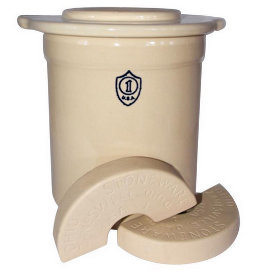 “Use a stone crock or oak keg. Shred the cabbage fine and long with a kraut cutter. Use one tablespoon salt for each gallon of cabbage, no more. Mix salt thoroughly with cabbage before putting into keg. I mix a gallon at a time. Use hands or wooden spoon, never metal. Press in keg until solid, but do not pound as this bruises cabbage and makes it dark. Set in a cool place and if not enough brine to cover pour on water until it is all covered, adding each day as needed. Be sure to keep plenty of water over the top of cabbage and weight it down. If skum [sic] rises on water, skim it off. Boone Co., M. B.”4
